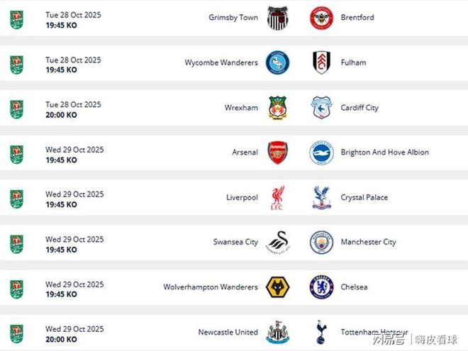 联赛杯(第四轮)前16名球队将在周中如期进行比赛,英超球队总数达到11支。英超球队之间将进行四场对决,其中两场争夺冠军。利物浦第三次面对死敌,而切尔西则在10天内两次面对同一个对手。曼联在联赛杯第二轮遭遇了最大的意外,输给了格里姆斯比。另外四支英超球队被淘汰,包括西汉姆联、伯恩茅斯、桑德兰和利兹联。九支具有欧洲任务的英超球队参加了第三轮比赛。阿斯顿维拉、诺丁汉森林、埃弗顿和伯恩利被淘汰。经过两轮比赛,共有9支英超球队未能进入16强,联赛杯16强中只有一场比赛没有对阵任何英超球队参加。英格兰锦标赛的雷克瑟姆将主场迎战英格兰联赛的卡迪夫城呃一。此外,富勒姆在一级联赛中面对威科姆流浪者队,而布伦特福德在二级联赛中面对格里姆斯比。这两场比赛都是英超联赛中游球队的比赛。不断大踏步前进的格里姆斯比能否继续打出神奇表现,值得关注。在英冠联赛中面对斯旺西时,曼城显然是实力较弱的对手。斯旺西在英冠积分榜上处于中游位置。决赛在落后两分的情况下,他们连进三球逆转淘汰诺丁汉森林。波斯特科格鲁教练的糟糕开局可能是他早早被解雇的一个主要原因。因此,曼城不能掉以轻心。据随队记者透露,罗德里正在训练中,预计会复出参加联赛杯。剩下的四场比赛将在英超球队之间进行。阿森纳主场迎战布莱顿,但晋级并不困难。罪输给利物浦后,阿森纳保持着良好的状态,各项赛事10场比赛保持不败,取得9胜仅丢2球。下一步是英超联赛,他们将对阵伯恩利和桑德兰两支升班马,以及欧冠联赛。在联赛中他们将对阵布拉格斯拉维亚。在11月的国际比赛日之前,这四位对手都不是强者。阿尔特塔需要利用这一点并努力建立领先地位。狼队主场迎战切尔西,但不会有太多悬念。狼队是英超联赛中实力最低的球队。显然他们并没有太追逐联赛杯。保级是首要任务。切尔西在结束四连胜后需要一场胜利来增强信心。即使是在客场,赢球也是唯一的目标。有趣的是,10天后切尔西将在英超再次迎战狼队。不同的是,下一场比赛将在主场进行,两队将遭遇双打。ce 在短时间内。纽卡斯尔联将在主场迎战托特纳姆热刺队。这是两位上赛季冠军之间的对抗,一位是卫冕冠军,另一位是欧洲冠军。纽卡斯尔近5场比赛赢了4场,但在联赛中仍陷入起伏,无法保持连胜。托特纳姆热刺队也面临着类似的情况。除联赛初两场外,没有取得过连胜。他们马上就要对阵切尔西、曼联、阿森纳和巴黎圣日耳曼,这非常困难。托特纳姆热刺在过去的六场比赛中输掉了五场,而纽卡斯尔看起来就像他们的主要竞争对手。另一个对手是利物浦,他们本赛季将第三次主场迎战水晶宫。这也是上赛季伟大冠军之间的对抗。新赛季首场比赛,利物浦输给了社区盾对手,随后连胜七场,最后输给了水晶宫,在六场比赛中被淘汰。状态不佳,已损失 5 场。事实是,水晶宫陷入了困境。在欧国联击败利物浦并再胜一场后,他们就再也没有取得过胜利,连续4场比赛1平3负。弱旅交锋中,利物浦能否挽回颓势?联赛杯的负责人特别关注了四次夺冠的曼联老将韦恩·鲁尼与联赛杯之间的联系。 2002年,鲁尼开始为埃弗顿队参加比赛。在联赛中,同样是对阵雷克瑟姆,鲁尼打进了两个进球,这是他职业生涯的第一个和第二个进球。年仅 17 岁的鲁尼距离成为埃弗顿历史上最年轻的进球者仅剩 10 天。从此,一颗新星诞生了。赢得联赛杯是他转会曼联后的第一座奖杯,他的第一个进球,也是他的第一场胜利。联赛杯对于鲁尼来说是一件幸事。
