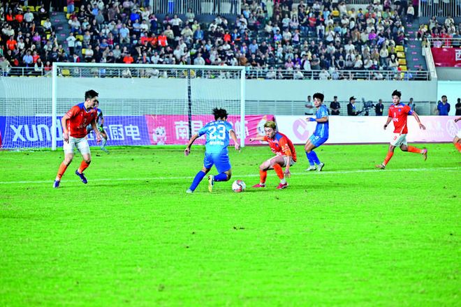 本报讯(记者李涛)10月11日晚,益阳奥林匹克公园体育场灯光璀璨,“湘超联赛”第五轮展开激烈争夺。来访的湘潭队竭尽全力,可惜以1:2不敌对手益阳队。尽管比赛结果不尽如人意,但现场球迷还是认可了湘潭队在比赛中的斗志。游戏场景。 (记者方洋摄) 比赛还没有开始。能容纳3万人的益阳奥林匹克公园体育场挤满了人。锣鼓声、歌声、欢呼声回荡在整个场地。赛前开幕式热闹非凡,民族舞蹈、活力四射的足球小将、看台上彩旗飘扬,将场内变成一片欢乐的海洋。益阳市高度重视本次活动。西安车队10日上午抵达时,对方挂着红旗的30辆车编队迎接他们,并打着“你好”的字样。益阳市一位官员表示:“湘潭是毛主席的家乡,我们将以最大的礼遇迎接湘潭队的到来,希望大家在益阳玩得开心、吃得开心、玩得开心。”比赛初期,益阳队在主场球迷的欢呼声中积极进攻,频频对客队构成威胁。湘潭队也保持强势防守,寻找反击机会。不过,随着比赛的进行,益阳队逐渐占据主动,从第20分钟开始,连续获得射门机会,但未能转化为得分。第一个进球是在第34分钟打进的!本届“射超联赛”开赛以来,湘潭队再次暴露出定位球特别是角球防守不力的问题。对手利用角球机会,头球成功破门。 1:0,益阳队拿下领先!就在易阳队眼看要以优势结束上半场的时候,戏剧性的一幕发生了。湘潭队的坚持终于在上半场补时两分钟结束前得到了回报。门前混战中,一名湘潭球员从角度低射破门。 1:1!两名选手回到了同一起跑线。下半场双方互换位置,复仇。益阳队自然不愿意接受平局,但打进开赛以来首个“运动进球”的湘潭队在保持稳固防守的同时,士气大振,全力反击。球场上,两队战况十分胶着。双方均创造了多次得分机会。第65分钟,益阳队球员利用湘潭队的主动进攻。在中圈断球后,他们独自进入比赛并迅速突破进攻区域,避开门将并射入一记无人射门入网。 2:1,益阳队再次领先!尽管比分较低,但湘潭队并没有放弃,频频压迫前线制造威胁。一时间,益阳队在门前陷入了混乱的状态。即便如此,场上比分依然没有改变,最终亿阳队笑到了最后。虽然首回合失利,但湘潭队的整体表现还是得到了场上球迷的认可。比赛结束后,湘潭球迷队全体球员来到湘潭球迷看台前鞠躬。 “湘潭队的球员非常努力、顽强。我认为这是我们很长一段时间以来打得最好的一场比赛。他们可以高高兴兴地回家了。”一位球迷说道。