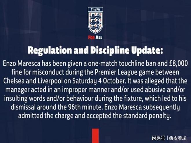 该来的终究会来,就算你想隐藏也无法隐藏。切尔西遭受沉重打击。足协官方宣布对马雷斯卡进行停赛和罚款。纪律问题开始让球队担忧,切尔西在最近的比赛中几乎每次都吃到红牌。英格兰足协宣布,马雷斯卡在切尔西对阵利物浦的比赛第96分钟因不当行为和使用攻击性语言而被罚下场。裁判向他出示了红牌并将他罚下场。考虑到这一点,马雷斯特将被停赛一场,并支付8000英镑的罚款。马雷斯卡接受案件事实,并打算接受适当的处罚。这发生在上周末的英超联赛中。埃斯特班在对阵利物浦的比赛中攻入“决定性”进球后,切尔西主帅马雷斯卡在替补席上过度庆祝,被裁定违反相关规定。这位18岁球员压哨得分o 击败一线队并获得一张载入史册的庆祝红牌。也许这一切都是值得的。切尔西在最近的比赛中已经吃到了多张红牌。对阵曼联的比赛中,桑切斯在开场几分钟就不得不离场。卡塞米罗也被红牌罚下,但曼联已经轻松领先。切尔西全取三分,遭遇新赛季联赛首败。查洛瓦在对阵布莱顿的比赛中也吃到了红牌。最终他们取得领先,但最终对手投进三分,比赛被逆转。切尔西在联赛中遭遇两连败。他们很快将在欧冠小组赛中迎战本菲卡,但佩德罗在补时阶段再次吃到红牌。幸运的是,随着比赛接近尾声,最终切尔西能够在主场击败来访的穆里尼奥,没有错失胜利。除了联赛杯之外,切尔西在四场比赛中都吃到了红牌。最近五场比赛。三名是球员,一名是教练。其中两场比赛输球,另外两场比赛在伤停补时阶段被红牌避免失利。不得不说,切尔西为红牌事件付出了高昂的代价。这不仅是英超联赛,也是欧冠联赛。这也适用于Ons联赛。我们无法明确证明这是否是一次“故意”攻击。奇怪的是,马雷斯卡应该被停赛。一些粉丝认为这并不是一件坏事。也许没有教练会更好。尽管在对阵曼联的比赛中门将提前被罚下场,但马雷斯卡的调整却引发了巨大争议。两名边锋埃斯特班和内托立即被下场。随后帕尔默因伤被迫退出,切尔西的首发进攻三人组被替换。看来他很早就“放弃”了。情况可能会突然、出乎意料地发生变化。由于卡塞米罗也被罚下,以同样数量球员完成比赛的切尔西可以最后时刻才进一球,未能避免失败。马雷斯卡的保守主义引起了强烈的怀疑。如果不是从一开始就换掉几名进攻球员,也许我们就不会输给曼联,也许我们就不会遭遇英超首败。在接下来的比赛中,马雷斯卡过于谨慎,始终承受着压力。他们在英超联赛中排名第7,领先曼联一分,在欧冠联赛中排名第18,领先淘汰区一分。新赛季,切尔西聘请多名攻击手大放异彩,夺得世俱杯冠军。遗憾的是我们没能保持进入英超时的实力,而且我们在过去四场比赛中只击败了利物浦。看来,强时弱、弱时弱的耻辱似乎又重演了。这次足协“现身”,切尔西缺阵比赛一名教练。他们将于本周末首次亮相英超联赛,客场挑战诺丁汉森林。波斯特科格鲁接任主帅以来,带领球队7场比赛取得2平5负。很多人要求解雇他,两支球队都面临着很多问题。球迷们最终会知道没有马雷斯卡的切尔西会发生什么吗?